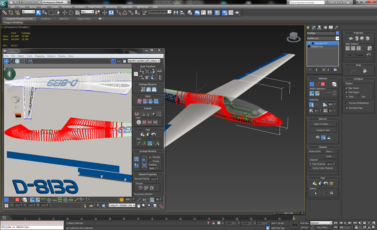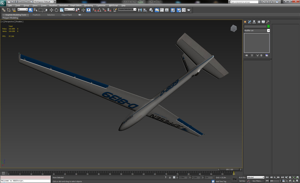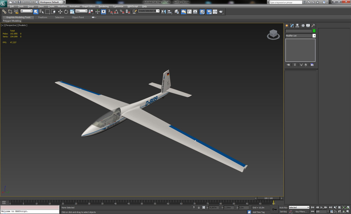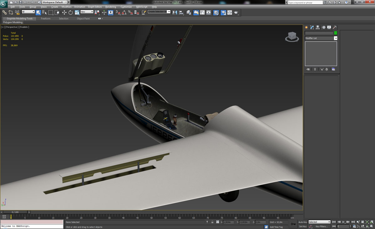 Das Modell besteht aus ca. 103.000 Polygonen und nutzt die neuen Möglichkeiten der Aerofly-eigenen Grafikengine voll aus. So sind die Aufkleber im Cockpitbereich als sehr hoch aufgelöste, sogenannte Decals erstellt und legen sich über die eigentliche Map, ohne vorhandene Funktionsmaps zu überschreiben. Das heißt, dass beispielsweise das Bump-Mapping voll erhalten bleibt, und es im Simulator so aussieht, als wäre tatsächlich ein Aufkleber auf dem Untergrund. Natürlich wurden außen wie auch innen Abient-Occlusion-Maps eingesetzt, um die Tiefenwirkung auf schattierten Flächen zu verbessern.